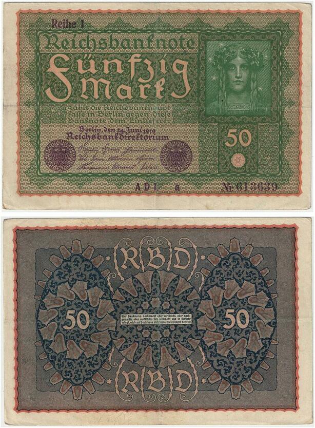 R0743 Germany Banknote 50 Mark 1919 Reihe 1 AU -> Make Offer