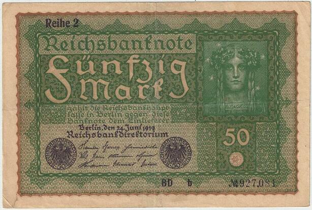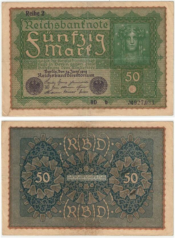 R0752 Germany Banknote 50 Mark 1919 Reihe 2 -> Make Offer
