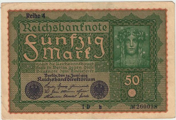 R0768 Germany Banknote 50 Mark 1919 Reihe 4 AU -> Make Offer