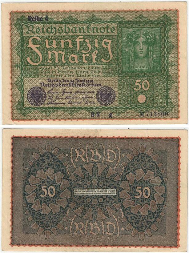 R0769 Germany Banknote 50 Mark 1919 Reihe 4 AU -> Make Offer