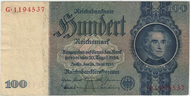 R0783 Germany Banknote Third Reich 100 Reichsmark 1935 AU -> Make Offer