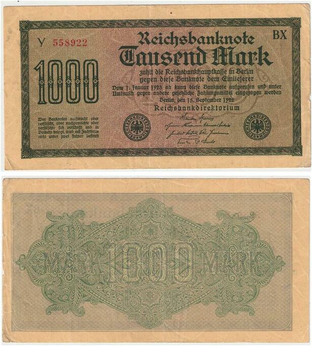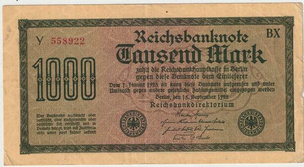 R0788 Germany Banknote Inflation 1000 Mark Red * 1922 -> Make Offer