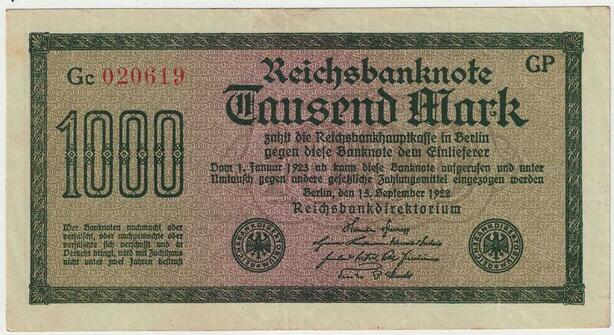 R0789 Germany Banknote Inflation 1000 Mark Red 1922 AU -> Make Offer