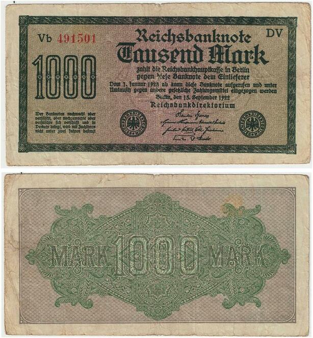 R0797 Germany Banknote Inflation 1000 Mark Red 1922 -> Make Offer