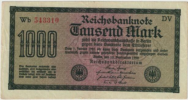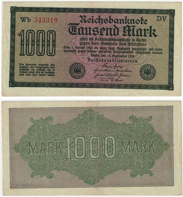 R0798 Germany Banknote Inflation 1000 Mark Red 1922 AU+ -> Make Offer