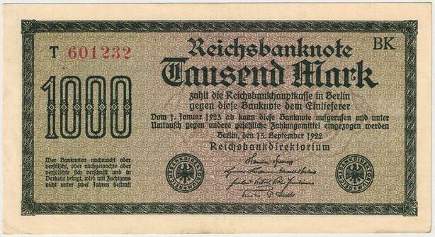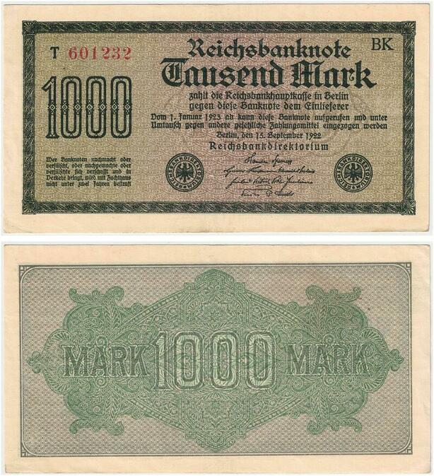R0802 Germany Banknote Inflation 1000 Mark Red 1922 AU -> Make Offer