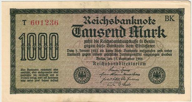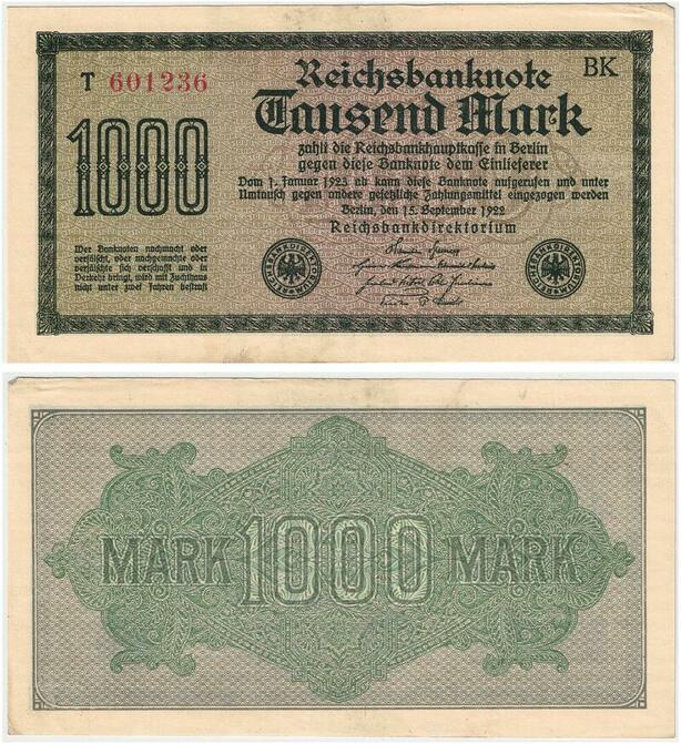 R0803 Germany Banknote Inflation 1000 Mark Red 1922 AU -> Make Offer