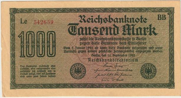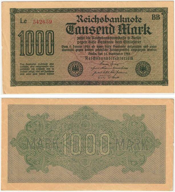 R0805 Germany Banknote Inflation 1000 Mark Red 1922 UNC -> Make Offer