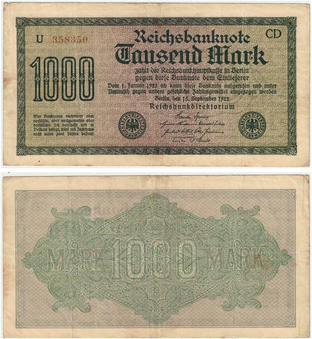 R0811 Germany Banknote Inflation 1000 Mark Orange 1922 -> Make Offer