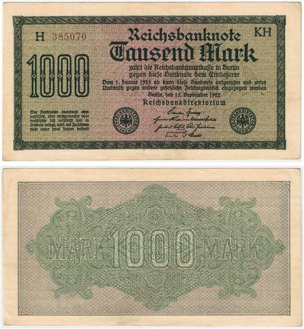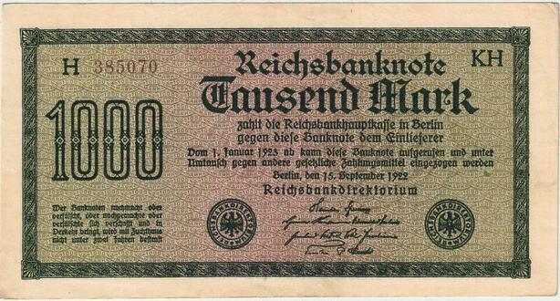 R0814 Germany Banknote Inflation 1000 Mark Brown 1922 AU-> Make Offer