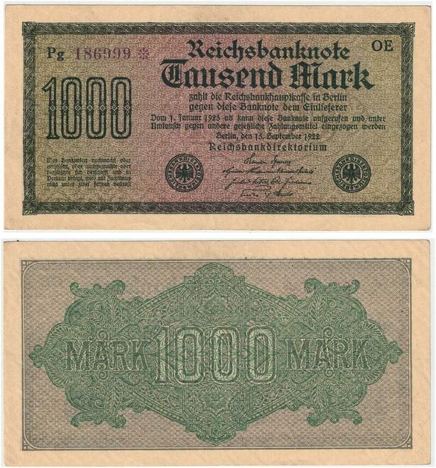 R0815 Germany Banknote Inflation 1000 Mark Purple 1922 * UNC-> Make Offer