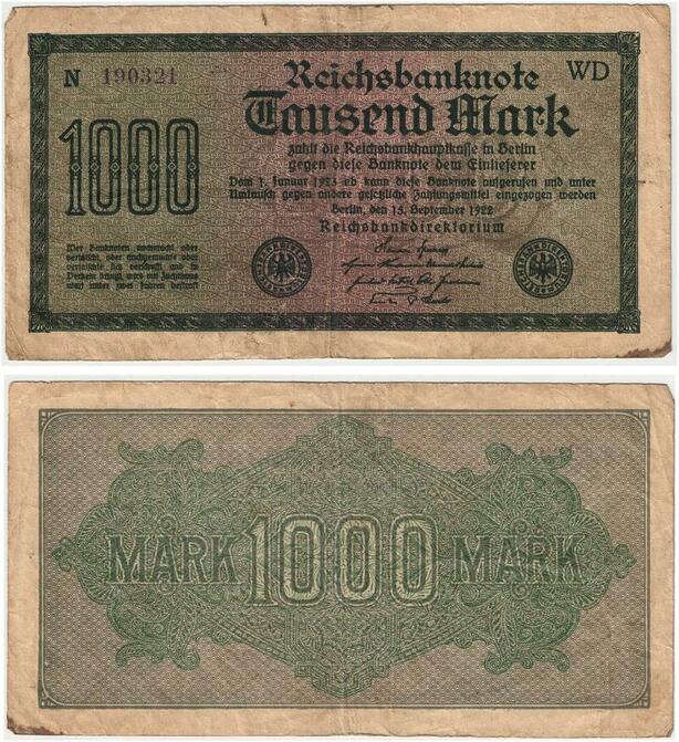 R0816 Germany Banknote Inflation 1000 Mark Black 1922 -> Make Offer