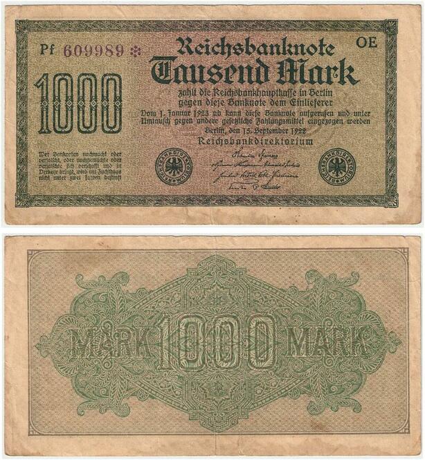 R0817 Germany Banknote Inflation 1000 Mark Red 1922 -> Make Offer