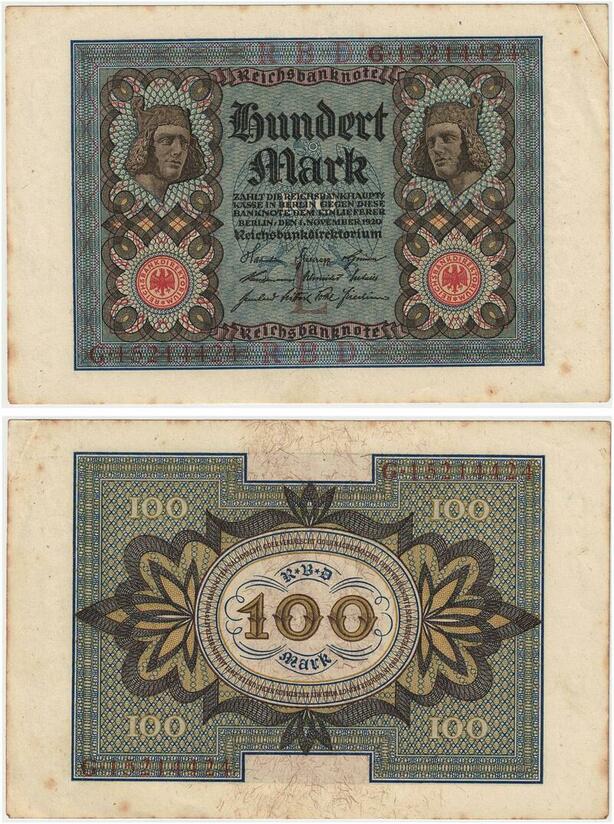 R0822 Germany Banknote 100 Mark 1920 AU+-> Make Offer