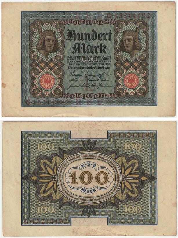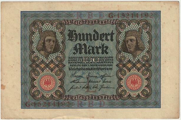 R0876 Germany Banknote 100 Mark 1920 AU- -> Make Offer