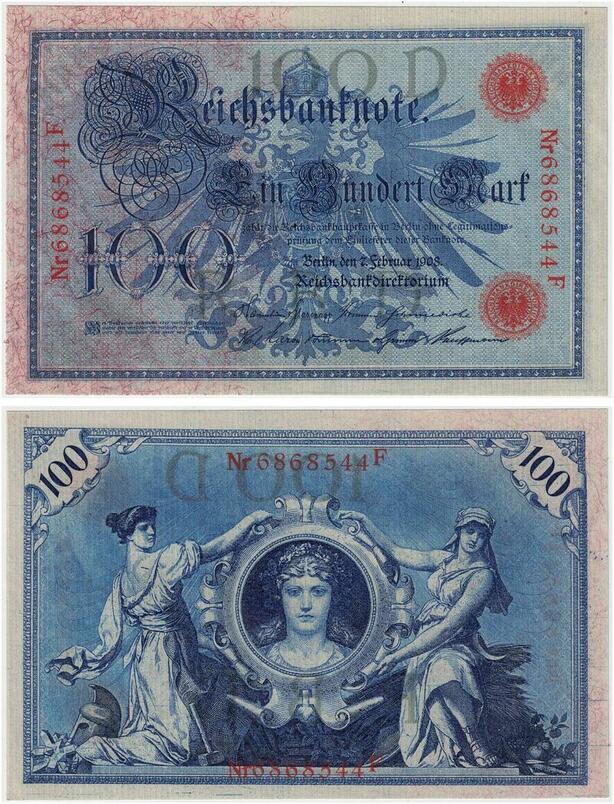 R0921 Germany Banknote 100 Mark 1908 UNC -> Make Offer