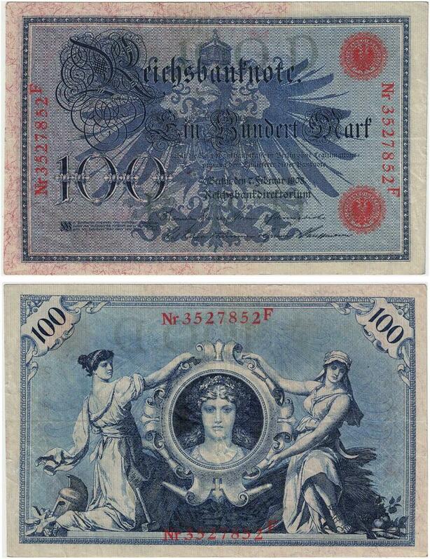 R0928 Germany Banknote 100 Mark 1908 AU -> Make Offer