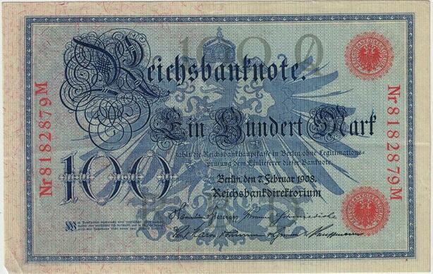 R0936 Germany Banknote 100 Mark 1908 AU -> Make Offer