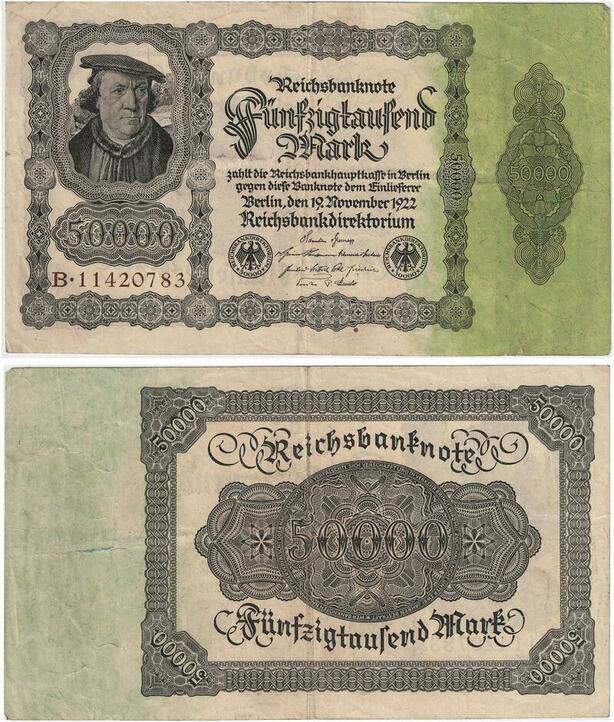 R0960 Germany Banknote Inflation 50000 Mark 1922 AU -> Make Offer