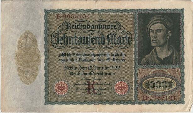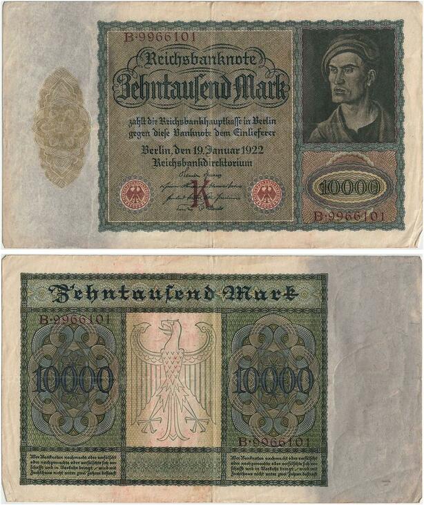 R0961 Germany Banknote Inflation 10000 Mark 1922 AU- -> Make Offer
