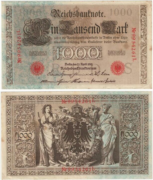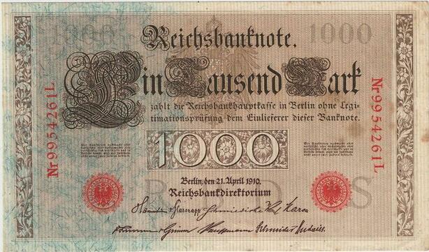 R0970 Germany Banknote 1000 Mark 1910 AU+ -> Make Offer