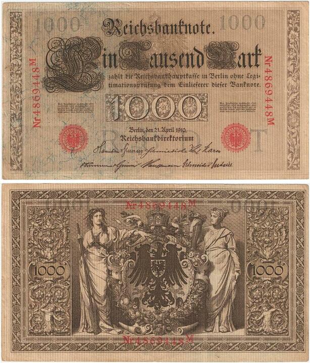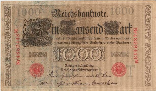 R0974 Germany Banknote 1000 Mark 1910 AU -> Make Offer