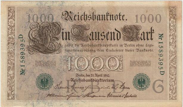 R0975 Germany Banknote 1000 Mark 1910 AU -> Make Offer