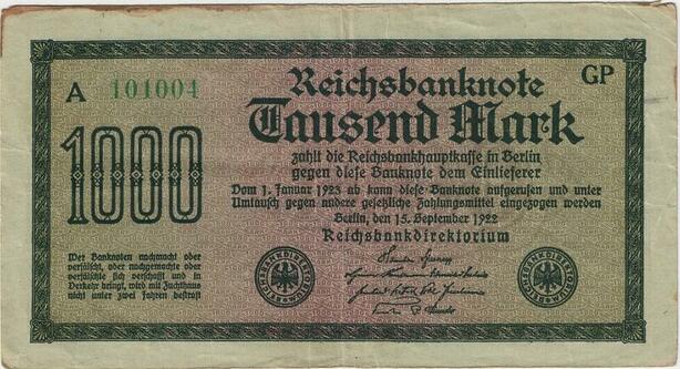 R0978 Germany Banknote Inflation 1000 Mark 1922 -> Make Offer