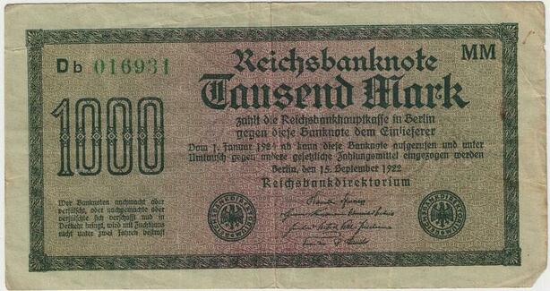 R0979 Germany Banknote Inflation 1000 Mark 1922 -> Make Offer