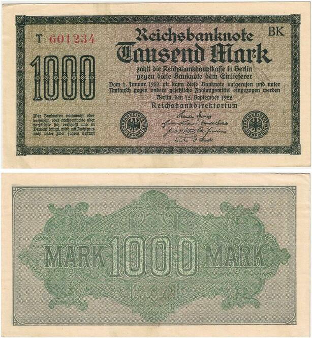 R0986 Germany Banknote Inflation 1000 Mark 1922 UNC -> Make Offer