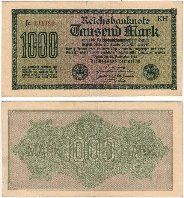 R0988 Germany Banknote Inflation 1000 Mark 1922 -> Make Offer