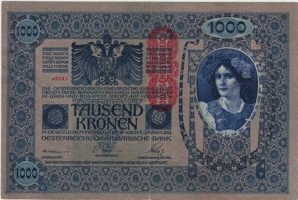 R1004 Austria Hungary Deutschösterreich Banknote 1000 Kronen1902 AU+ ->Offer