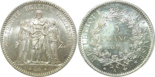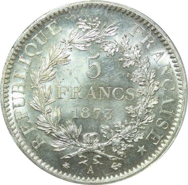 R1018 Rare France 5 Francs Hercule 1873 A Paris PCGS MS65