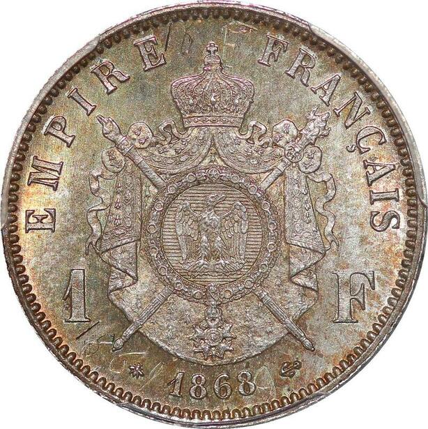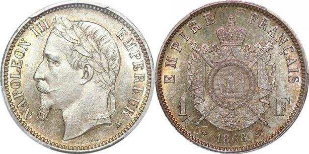 R1019 Rare France 1 Franc Napoléon III 1868 A Paris PCGS MS65