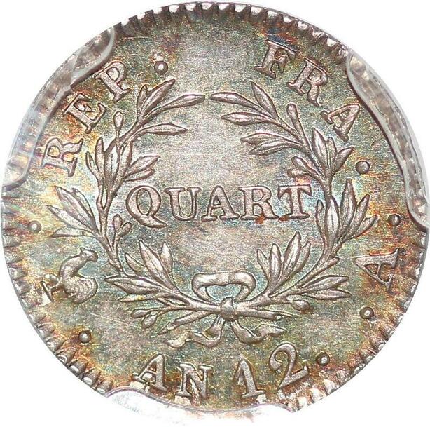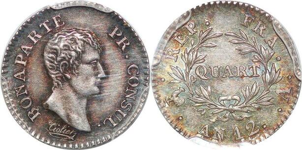 R1020 Rare France 1/4 Franc Napoléon Premier Consul an 12 A PCGS MS63