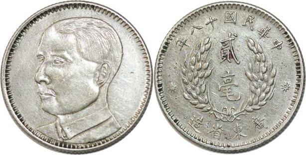 AA570 Rare China Kwangtung 20 Cents 1929 Y-426 LM-158 Silver -> Make offer
