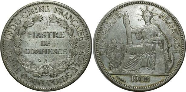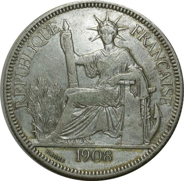 O677 Indochina 1 Piastre 1908 A Paris Argent Silver