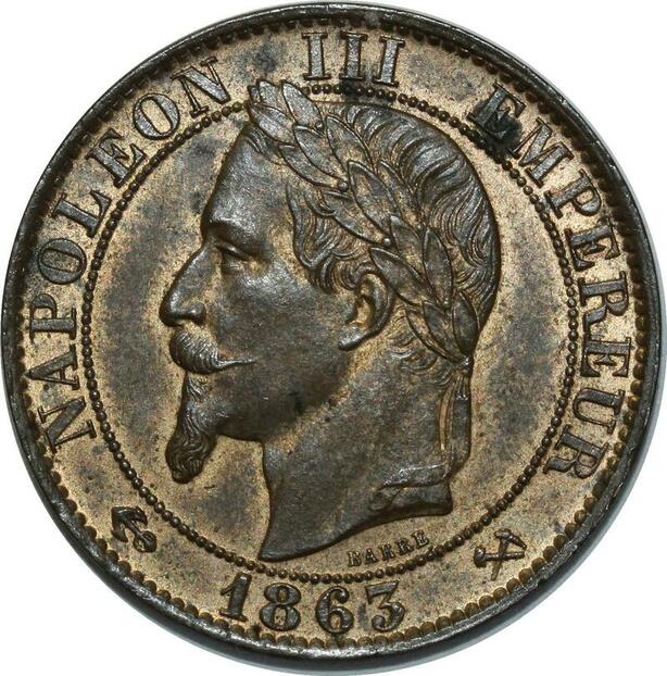 O892 France Tres Rare 5 Centimes Napoléon III 1863 K Bordeaux SPL PCGS MS63 ->F offre