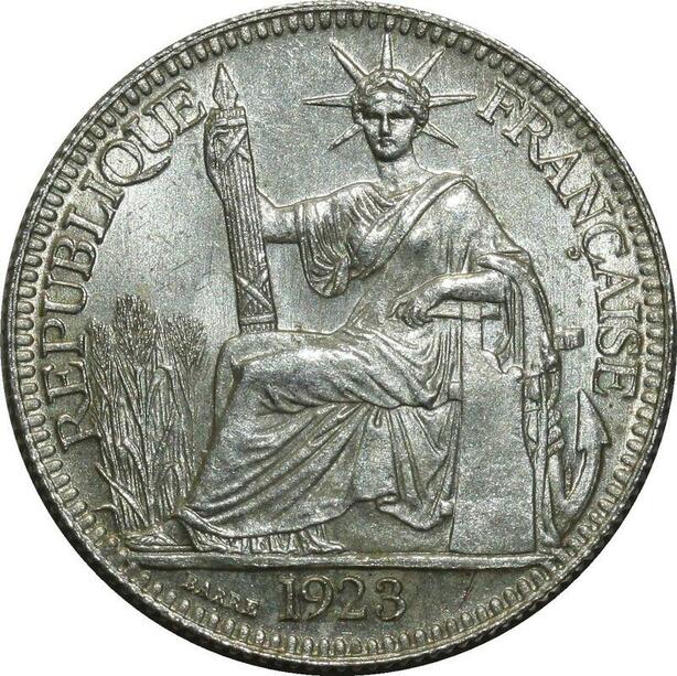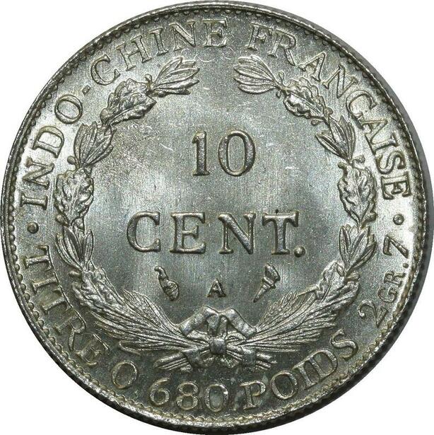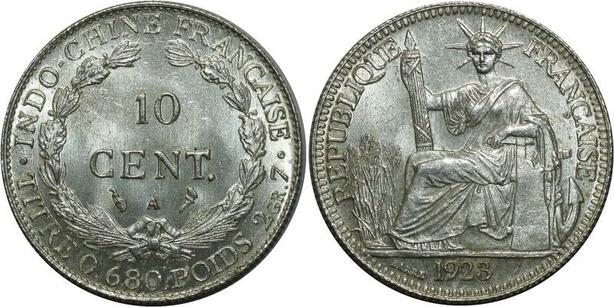 O922 Scarce !! Indochina 10 Centimes 1923 A Paris Argent Silver PCGS MS64