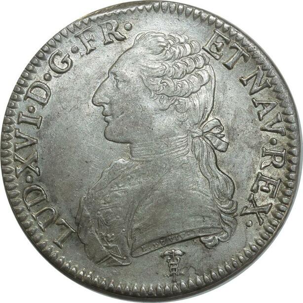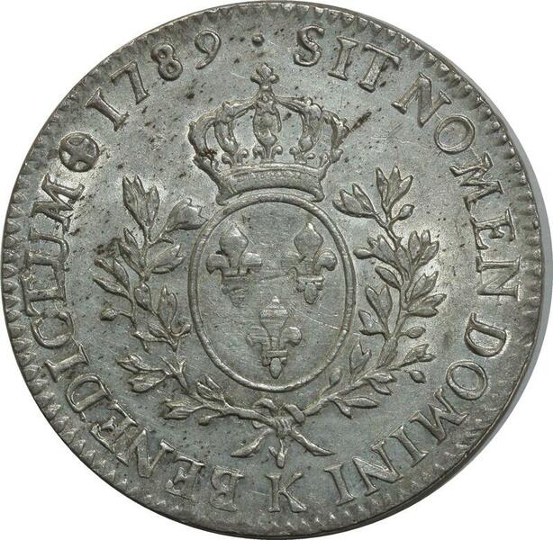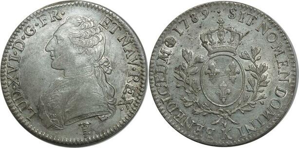 O1511 France Rare Ecu Louis XVI 1789 K Bordeaux Argent Silver PCGS AU53 SUP