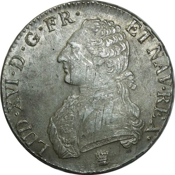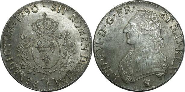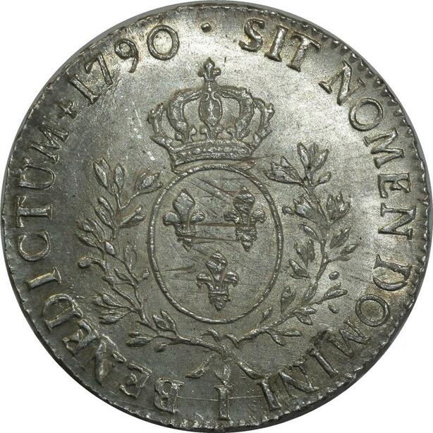 O1522 France Rare Ecu Louis XVI 1790 I Limoges Argent Silver SPL PCGS MS61