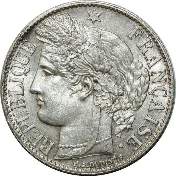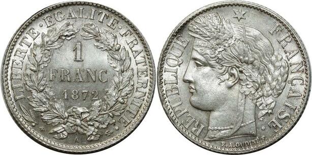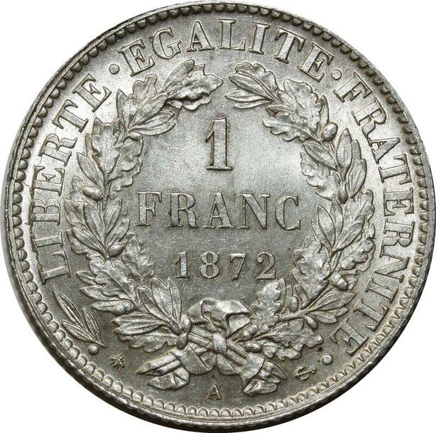 O1858 France Tres Rare !! Franc Cérès 1872 Petit A Argent Silver FDC PCGS MS64
