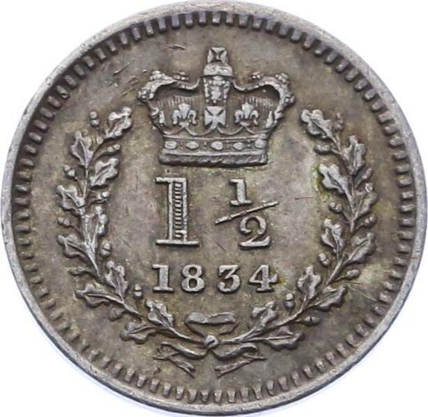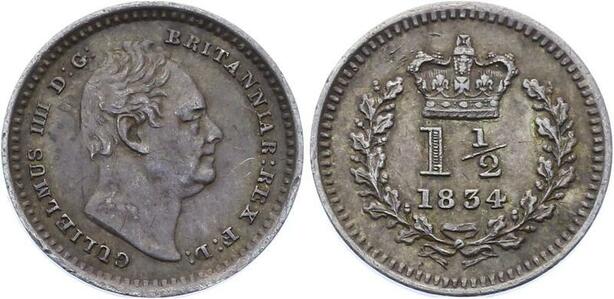 O2049 UK GB Great Britain 1 1/2 Pence William IV 1834 Silver AU !! ->Make offer