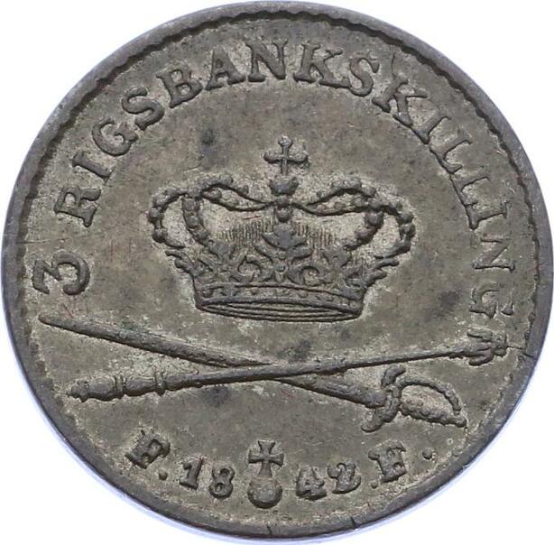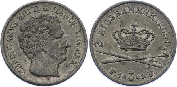 O2052 Scarce !! Danemark 3 Rigsbank Skilling Christian VIII 1842 K FF Silver AU !!