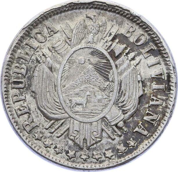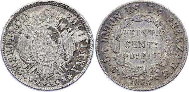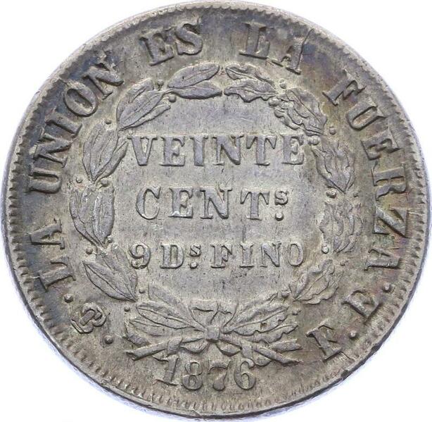 O2054 Bolivia 20 Centavos 1876 La Union es La Fuerza Silver AU !! ->Make offer