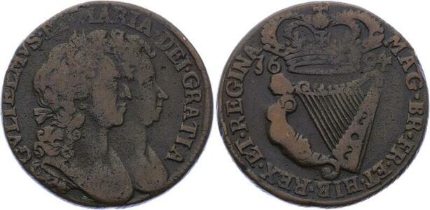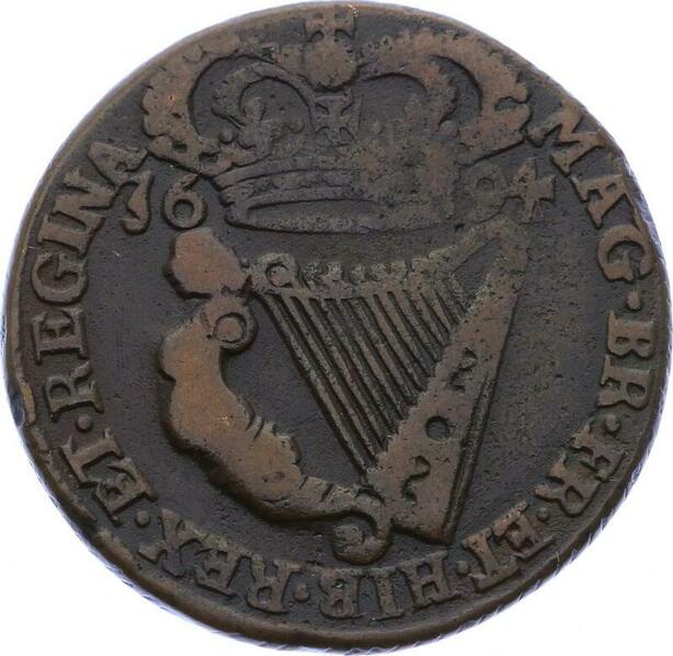 O2059 Scarce UK Irland Half Penny 1694 William & Mary ->Make offer