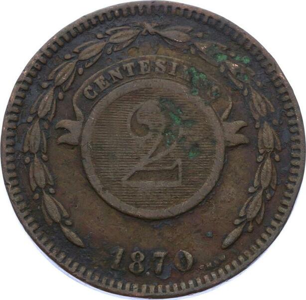 O2068 Paraguay 2 Centesimos 1870 ->Make offer