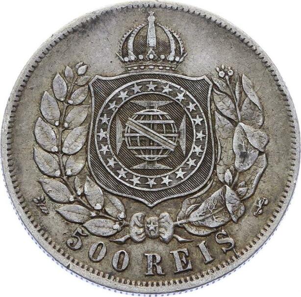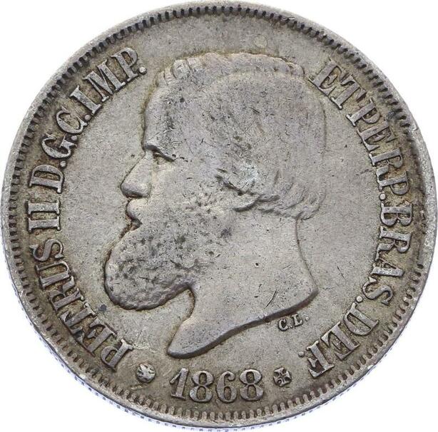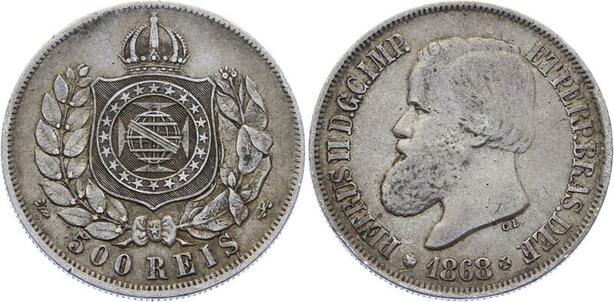 B2075 Brazil Bresil 500 Reis Pedro II 1868 Silver ->Make offer