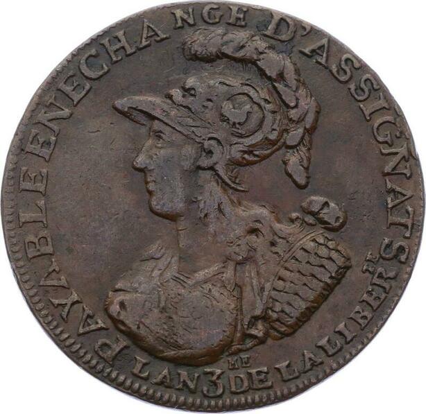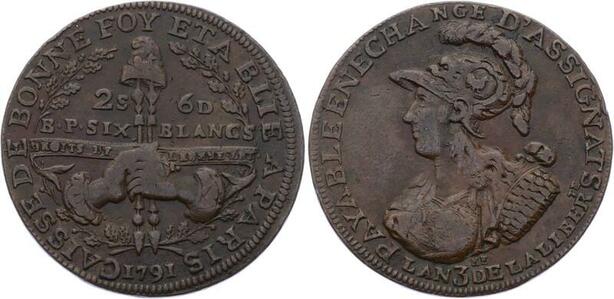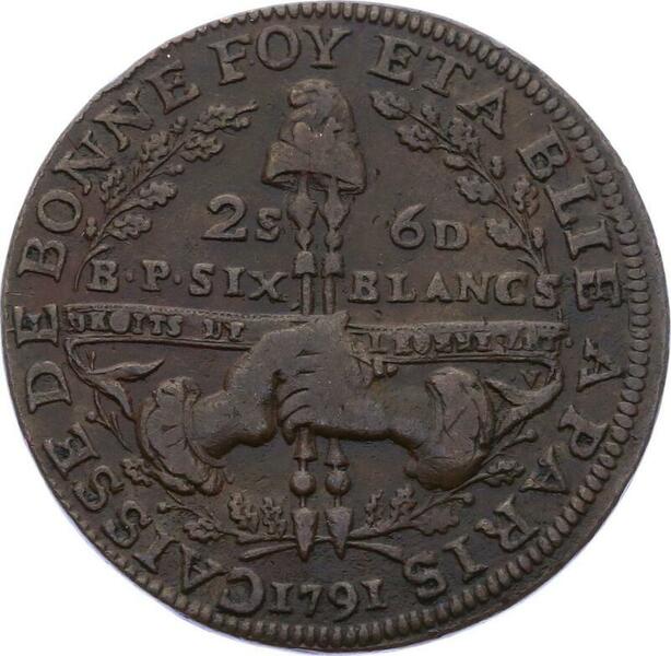O2116 Rare !! La Constitution 3 Sols Caisse de Bonne Foy Louis XVI 1791 Paris