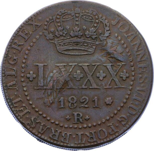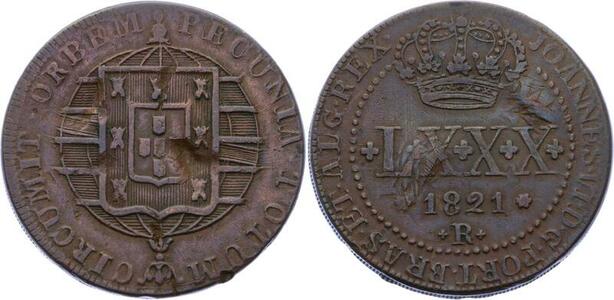 O2120 Error Brazil 80 Reis Juan VI 1821 R Rio de Janeiro Double Struck XF